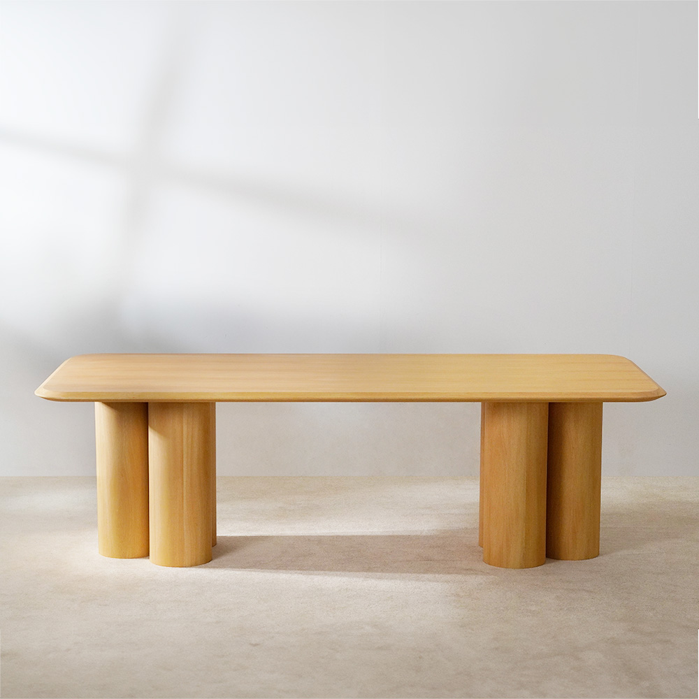 Tämä suuri moderni ruokapöytä on tuettu kolmella paksunnetulla massiivipuupylväällä molemmilta puolilta, joissa yhdistyvät trigonometria ja italialainen minimalismi.Massiivipuisen ruokapöydän pinta on sileä ja purseeton.Hyvin suunnitellut turvakulmat suojaavat sinun ja perheesi terveyttä.Saatavana tammi-pähkinäsaarni puumateriaalivaihtoehtoina.